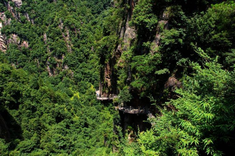 天台山生态保护完好,绿色资源得天独厚。这里湖泊缠绕、河溪纵横、峰峦叠嶂、古木参天,植被覆盖率达90%,森林覆盖率达75%,天高云淡、空气清新,素有“天然氧吧”的美誉。景区平均海拔680米,主峰海拔817米,夏季平均气温在22℃左右,是理想的避暑胜地。以生态之美、原始之美、朴素之美、壮观之美称赞天台山实不为过,春有山花烂漫、夏有绿荫清凉,秋有五彩山峦,冬有瑞雪雾凇,绝对是您纵情山水、休闲度假的好去处。