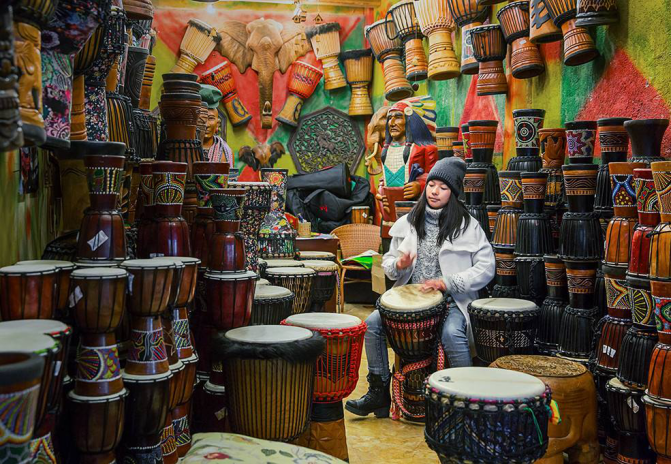 逛古城、泡酒吧、学手鼓,成了近两年来大理、丽江古城旅游的"流行玩法",很多旅行服务商还把"手鼓体验"列入古城旅游自由行的"打卡项目"。以"丽江古城手鼓"为关键词,通过搜索引擎进行检索,显示有55.3万个结果。非洲手鼓已然在云南古城成为了一道"声音景观",一件"旅游商品"。