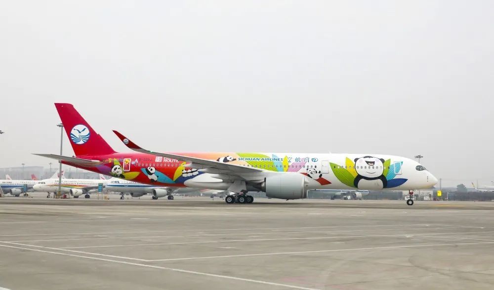 ●?川航第5架A350顺利抵蓉 熊猫彩绘机队再添新成员