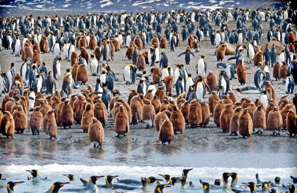 南乔治亚岛位于南大西洋,是一座活火山岛,全岛拥有突兀的冰川、潺潺的冰河、深邃的峡湾。虽然岛上气候寒冷,但是生活着丰富的海洋生物,如王企鹅、巴布亚企鹅、毛玻海豹、南极雪雁、信天翁等,被称为“南极野生动物的天堂”。