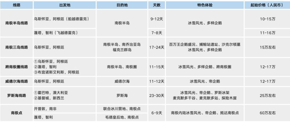 3)关于南极邮轮的线路