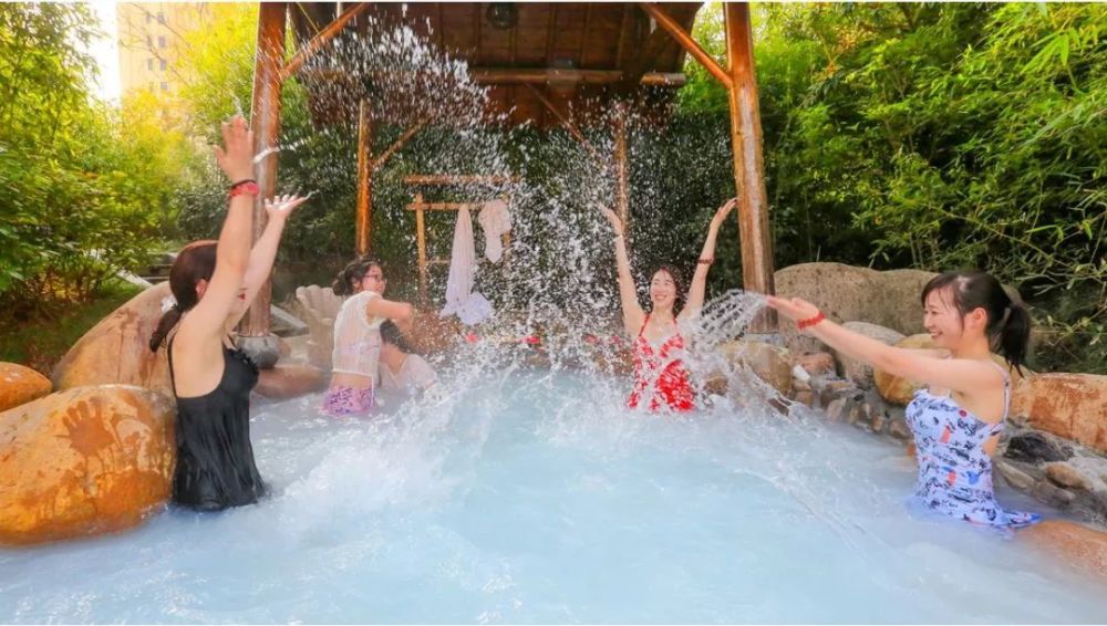 温泉是酒店的一大特色,可同时接待500人。温泉水取自2530米地底深处,水温常年恒温在55摄氏度,富含30余种有益健康的微量元素(当中锶、氡、硅含量颇高,可调节人体神经系统,改善微循环,促进新陈代谢,对维持人体电解质平衡有明显作用)。