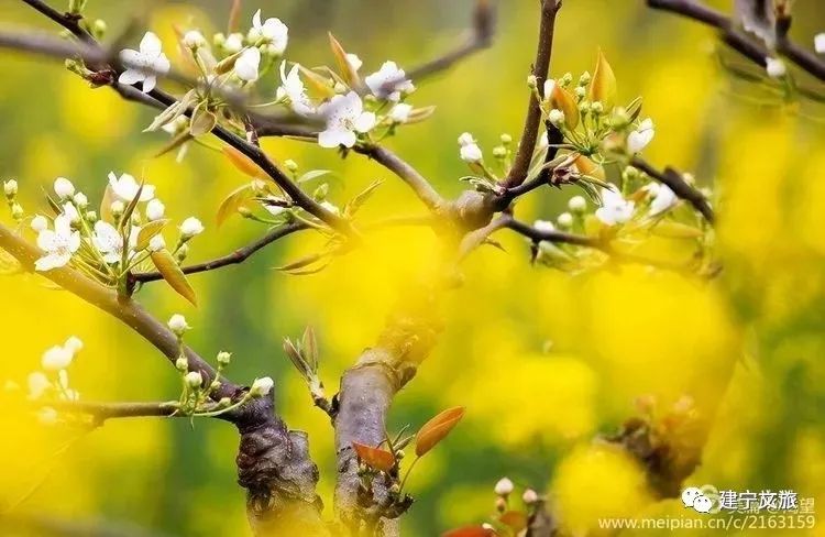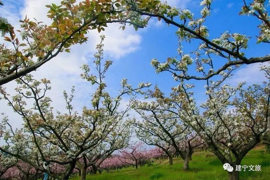 这里拥有数以万计的桃树和梨树,花开时节,桃花、梨花尽情绽放、展露芳华,漫山遍野的粉与白,簇拥成海、明快而灵动,远远望去,花海与田园、山峦相互映衬,构成了一幅“梨花千树雪,桃花相映红”的梦幻美景。