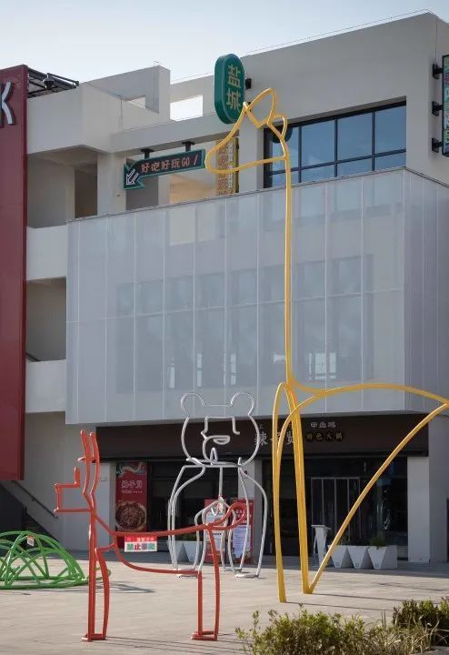 改造在场地关键节点放置了如“花舞光环”、 “线条动物朋友”、“脸谱文化墙”等兼具观赏功能和使用功能的艺术装置和城市家具,让访客能在空间感受中多些惊喜和意外。