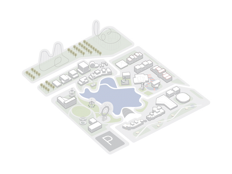 改造对原有游乐设施进行评判,保留了7个经典且状态较佳的大型游乐设施,以游乐设施串联起一条新的空间叙事主线。