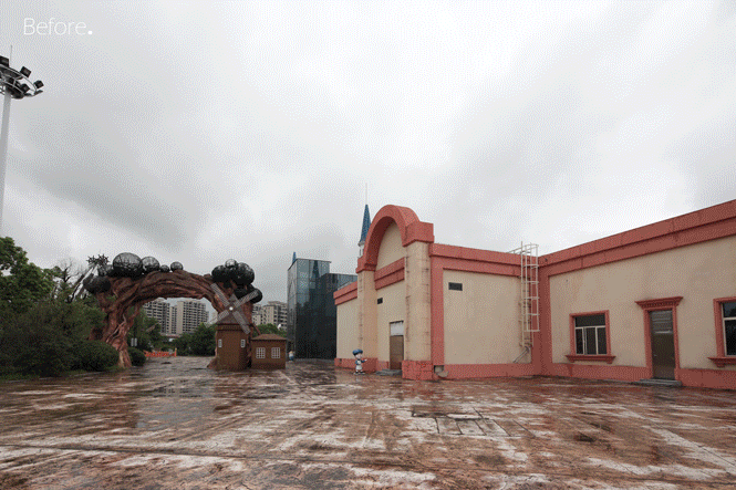 ▲作为主入口广场,场地改造前空旷破旧,改造通过景观提升与通过置入喷泉激活广场活力