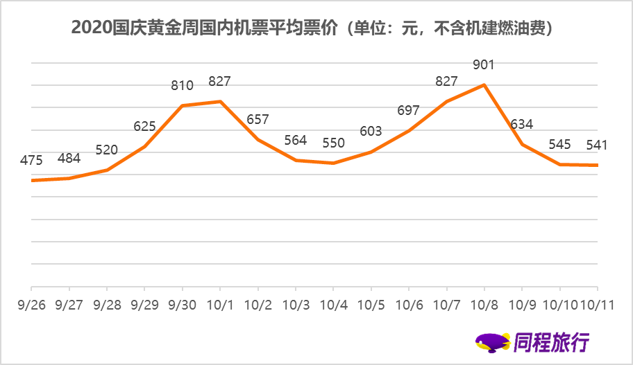 黄金周国内机票平均票价显著上升,返程高峰机票平均票价超900元