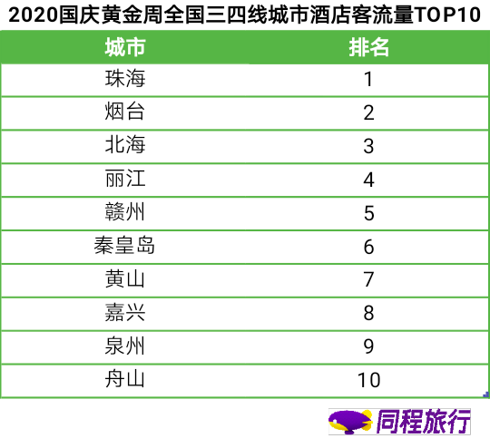 疫情防控形势整体相对稳定的三四线城市黄金周期间的酒店预订量预计将有较大幅度的增长,预订量较大的城市主要有:珠海、烟台、北海、丽江、赣州、秦皇岛、黄山、嘉兴、泉州、舟山等,主要以热门旅游城市为主。
