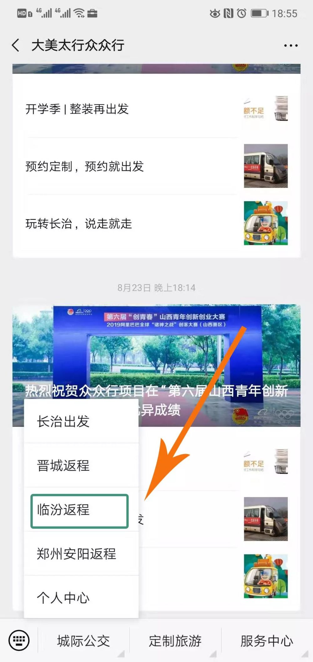 返程票购买:关注“大美太行众众行”微信公众号,点击『城际公交』选择『临汾返程』即可。