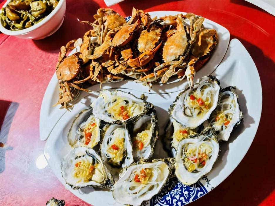 第一家是卧龙滩度假村。这家民宿面朝大海,视野开阔。到了晚上,可在屋内听到海涛声,听着海水一次次拍打着沙滩声,心情变得平静,心里的烦躁、疲惫会被海水带到大海的深处。来岛里,最让人兴奋的定是赶海!赶上退大潮,大家挽起衣袖裤腿,带上帽子、穿上拖鞋,再带上小桶和工具就朝着海里跑去。虽然赶海会很辛苦,但比起这个,赶海收获更多的是快乐和满桶“战利品”的成就感!比如小团腚螺,大海螺,野生海蛎子,螃蟹等等。到了晚餐时间,卧龙滩度假村用海鸭蛋、生蚝、螃蟹、鱼等纯野生本土食材制作美食,为旅客的食品安全提供了安全保障,也让第一次来岛里的游客们品尝到岛里的海鲜有多鲜!吃海里小鱼小虾的鸭子下的鸭蛋有多香!一个个的鸭蛋黄红彤彤的,直冒油。