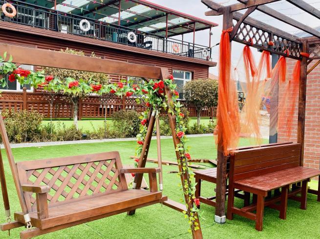第二家是来石城岛一定必打卡的民宿——众宇度假酒店。这家民宿从外观看起来很梦幻,有秋千、摇摇椅、沙滩椅,会让女孩子们少女心爆棚!