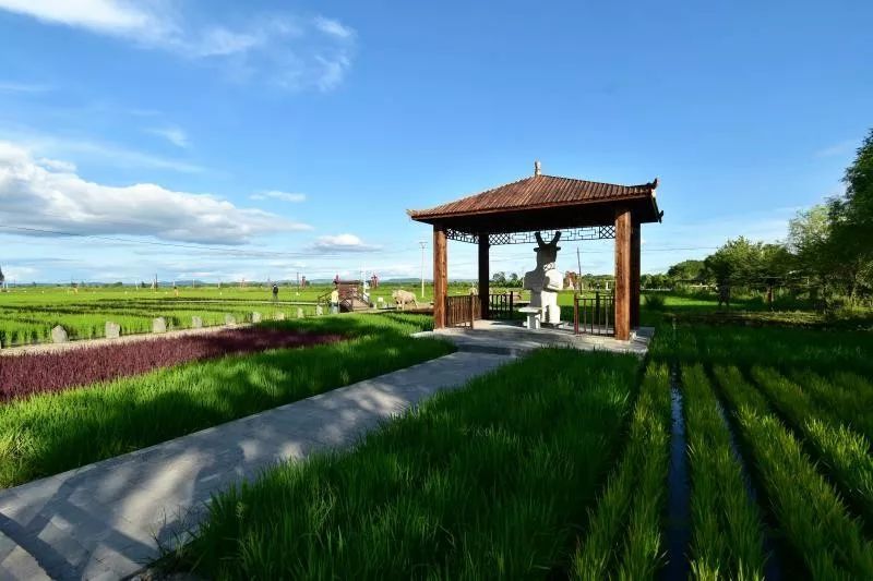 渤海是黑龙江省最早稻作起源地之一,作为—种传统文化,稻作文化正日益彰显其独特的魅力。渤海镇稻作主题公园的前身为渤海风情园,毗邻唐代渤海国上京龙泉府遗址。是一处以古渤海文化为底蕴;以浓郁的北方民族民俗风情为特色;以水车、小桥、草木屋为建筑风格。稻作文化展示馆是以稻作文化为主题,以响水大米的历史、稻草与大米的衍生制品为重点亮点,展示世界、国内、渤海时期、现代水稻历史,展示水稻的种植技艺、加工程序以及响水大米的优势和品牌价值。稻作田园生态体验廊道是让参观者在通过栈道时,能够从不同的视点、触觉和空间序列,观赏玄武熔岩台地生长水稻的独特景观和稻米加工情景。