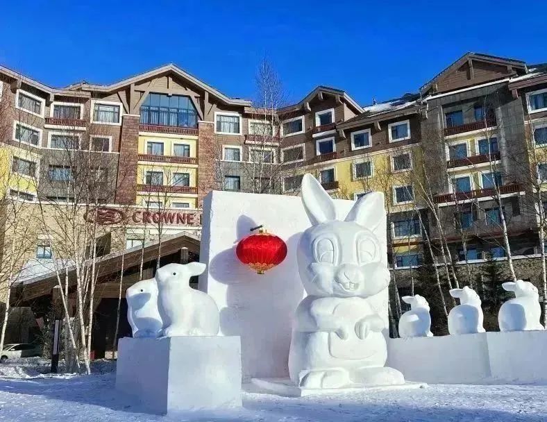 酒店正门处大型雪雕“兔”笑迎客人的到来;雪人列阵迎面而来;后花园打卡木屋别墅或挑战泼水成冰的神奇;与萌宠乐园的羊驼和阿拉斯加等动物亲密互动;畅玩雪圈、马拉爬犁等娱雪项目!
