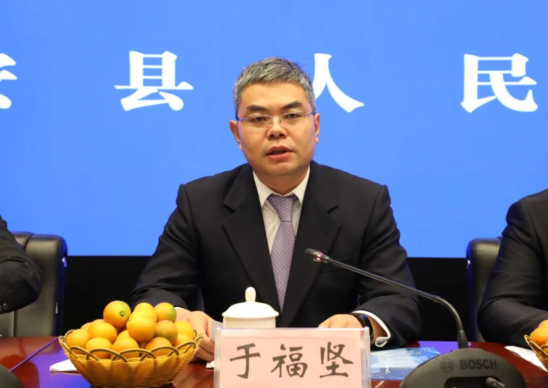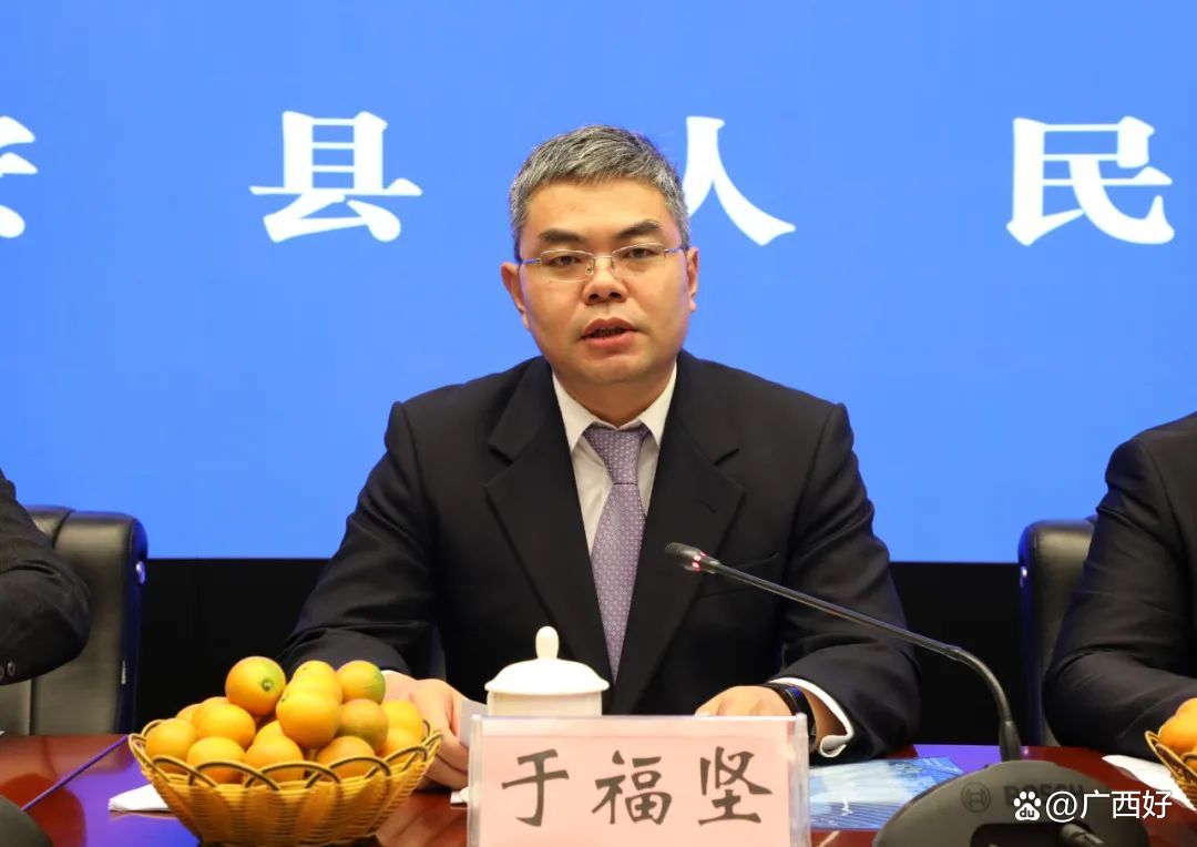 11月18日,在融安县第十三届金桔文化旅游节新闻发布会上,县委副书记、县长于福坚宣布金桔节举办时间。(杨雯静 摄)