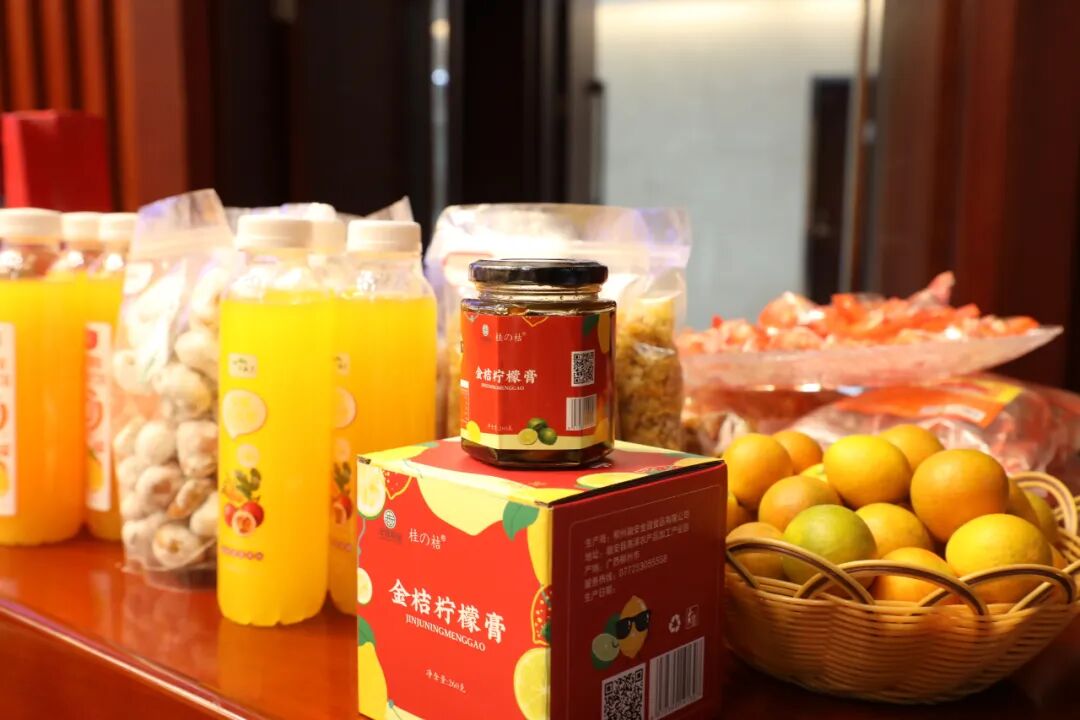 三产联动、助推发展。融安县委、县政府高度重视金桔深加工产业发展,在粤桂协作产业园暨农产品加工产业园区引进了多家金桔深加工企业入驻,重点研发金桔丁、金桔饼、融安雪桔、金桔柠檬膏、金桔果汁饮料等金桔系列产品,可实现销售额2亿元以上,实现了“融安金桔”从鲜果销售到深加工的突破。