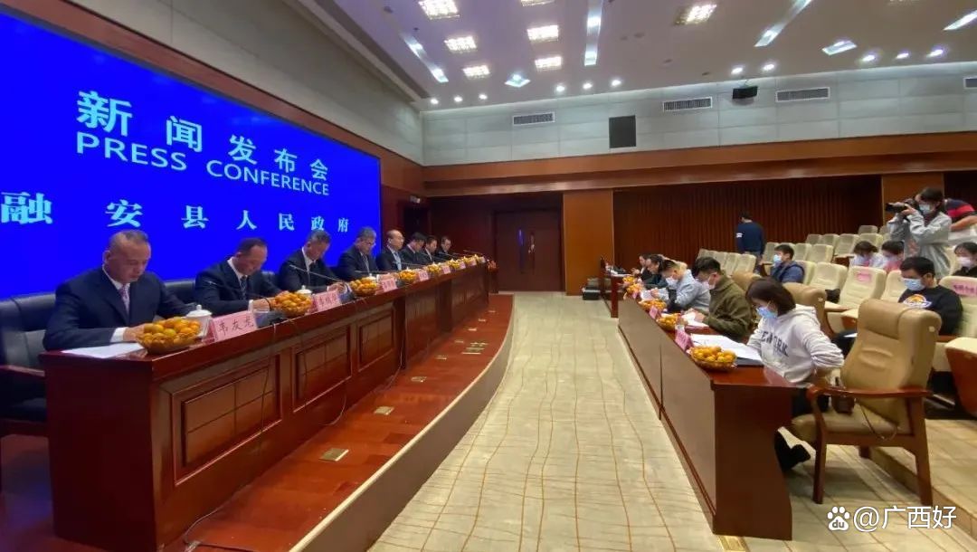 11月18日,在柳州市文昌会议中心新闻发布厅拍摄的融安县第十三届金桔文化旅游节新闻发布会现场。(杨雯静 摄)