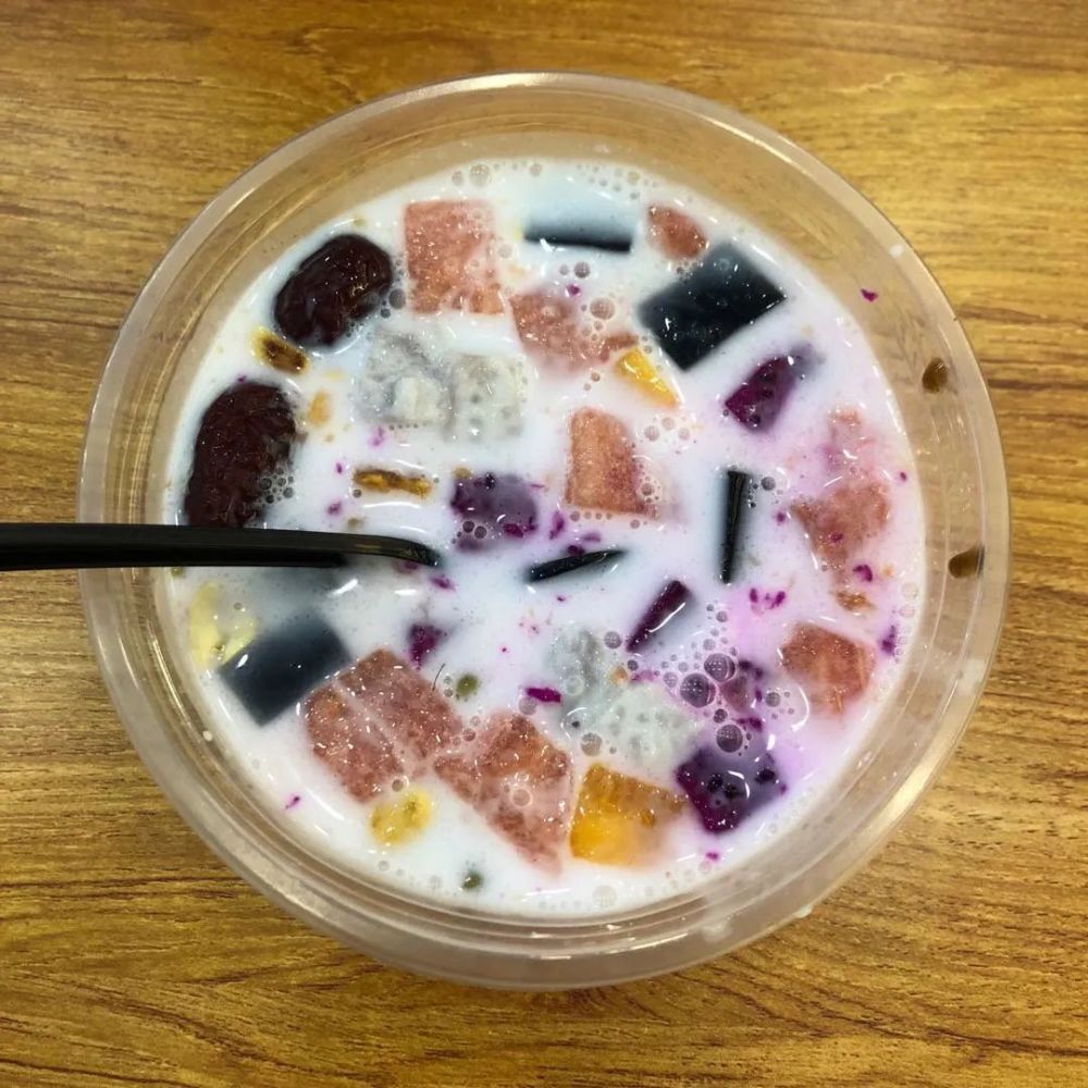 清补凉是三亚的特色小吃之一,洁白的椰奶加上薏米、红豆、椰果、通心粉、绿豆等,入口清香爽滑,一口下去神清气爽。