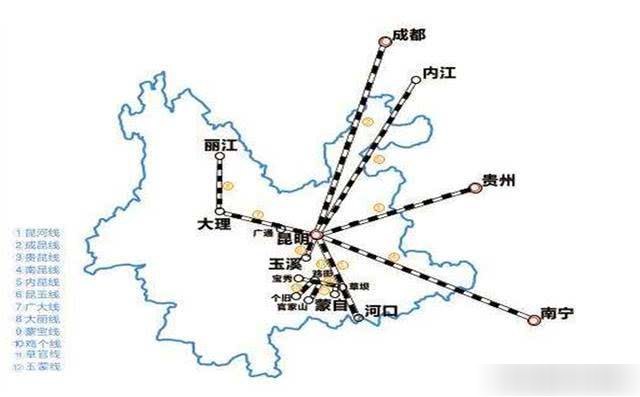 成昆铁路、贵昆铁路、南昆铁路、昆河铁路、沪昆铁路、云桂铁路
