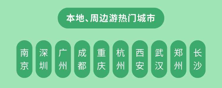 “五一”假期,本地游和周边游仍是主流,近程旅游持续领跑市场。从城市分布来看,在出游半径缩小的持续影响下,南京、深圳、广州、成都、重庆、杭州、西安、武汉、郑州、长沙等地游客依然保持了较高的出游热情。