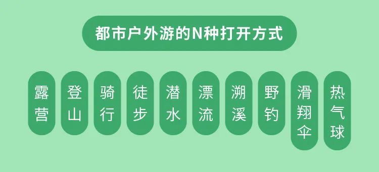 “都市户外”被这届都市打工人狠狠拿捏!露营、登山、骑行、徒步、潜水、漂流、溯溪、野钓、滑翔伞、热气球等户外活动褪去“技能型旅游”色彩,纷纷登上人们的都市户外体验清单,其中露营更是稳稳占据着都市户外游的C位。