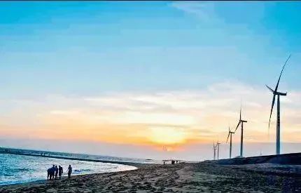 乘车前往月牙湾沙滩(约15分钟车程),像月牙一样的沙滩,故此得名。踩在光滑细腻沙滩上,看着海上一排排风车,可放风筝、可赏落日,别有一番意境(游览时长约60分钟)。