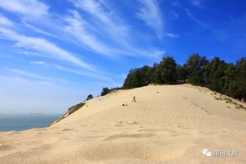 皇帝山一面是悬崖峭壁,一面则是一个大沙丘,海风把沙子吹到山丘日积月累地形成沙漠般的沙山。来皇帝山,滑沙是必不可少的。行走其中,就像是置身于荒无人烟的沙漠。然而,近在咫尺的却是无边的大海,美丽海岸与大漠风光相互映衬,构成一幅罕见的图景。