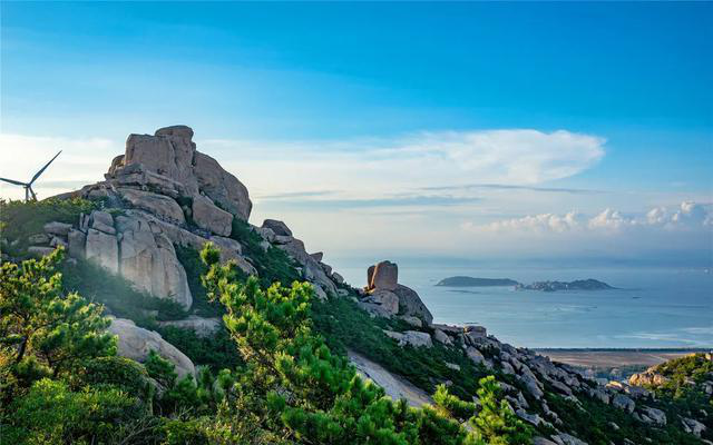 乘车前往尖山瞰海(约10分钟车程),俯瞰海岛风貌,观赏海上风车阵及往来船只。
