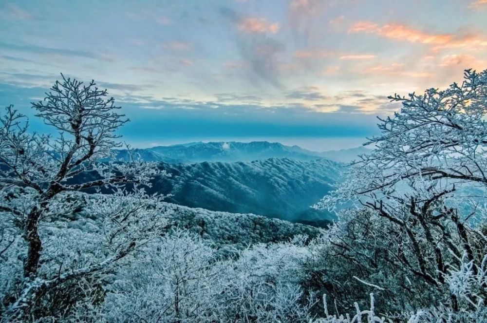 雷公山有“三绝”景点,一是“万木之王”秃杉林,二是阳光和云雾折射的佛光盛景,三是雷公山“天书”。随着冬天到来,雷公山也披上了白色的外衣,景区内处处银装素裹,树枝上、叶片上、扶手上都堆满了白雪,像极了洁白的丝带,将雷公山装点得格外美丽。