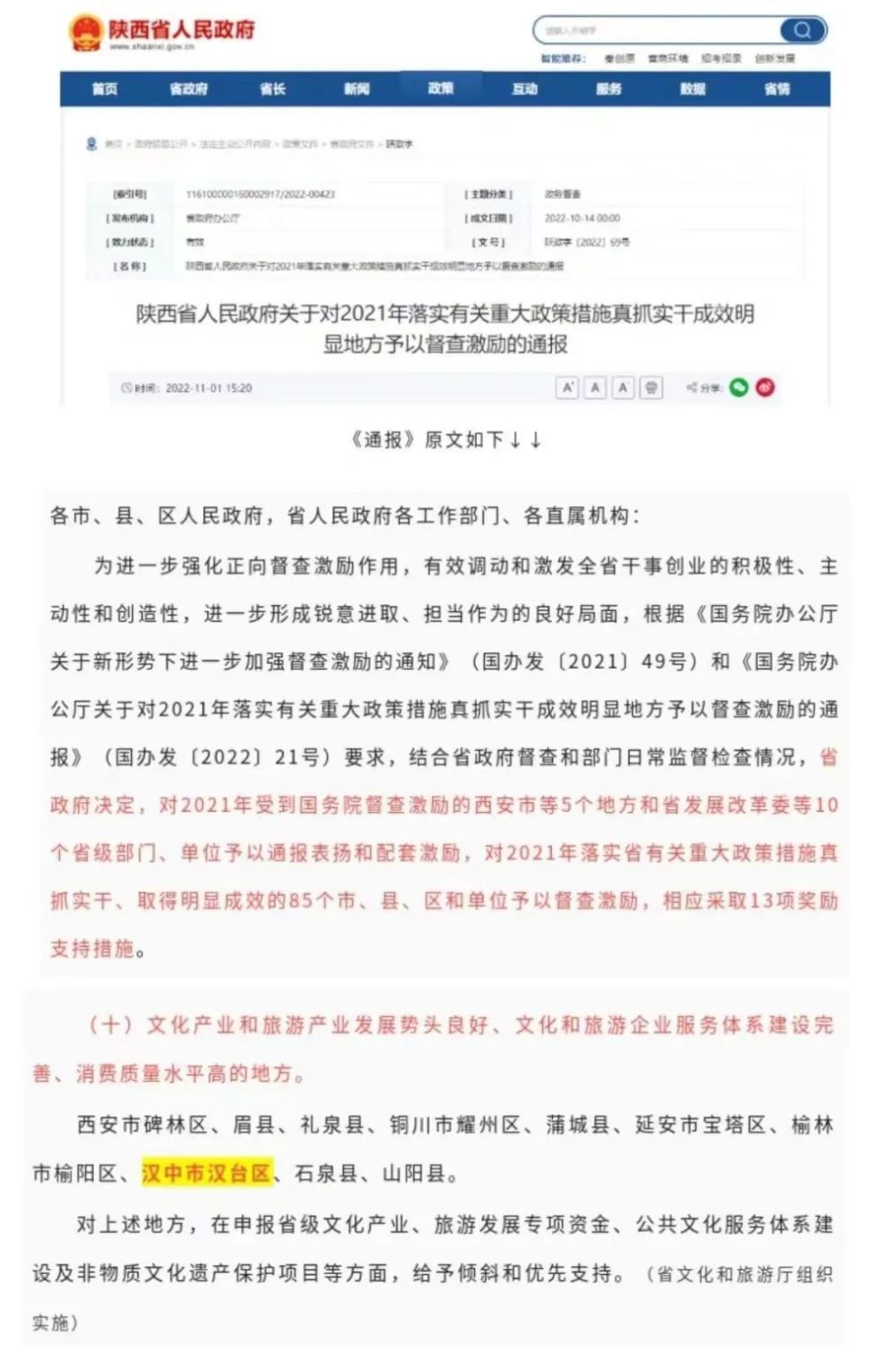开展多层次、多形式的各类文旅促消费活动,出台新一轮文旅行业稳增长工作措施,举办首届“汉风古韵·传奇夜”暨文旅消费季、2022汉中冰雪嘉年华暨文旅促消费等活动,组织文旅企业参加中国青年致富带头人来汉活动旅游商品展、第二十九届杨凌农高会陕西乡村旅游展等活动,开通汉中至徐家坪文创专列、红色旅游专列。发展夜间经济,“兴汉生态旅游汉文化示范区”创建为首批省级夜间文化和旅游消费集聚区,宁强羌族文化博览园对外开放,天汉长街“味见汉中”特色街区建成运营。