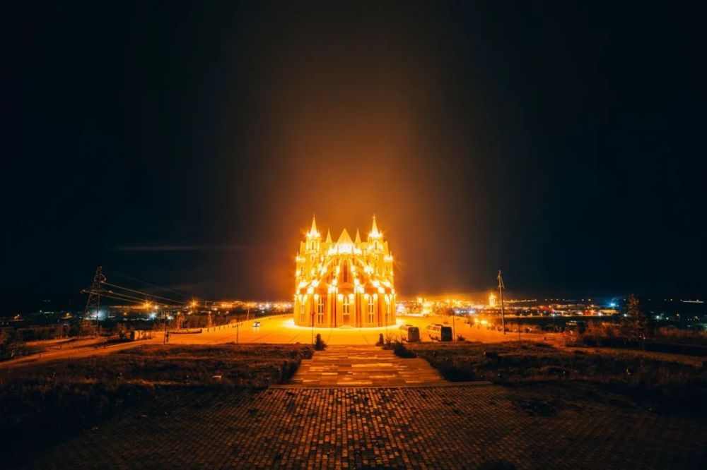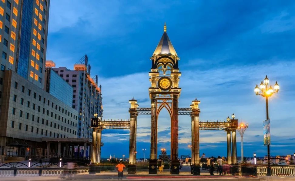 下一站前往观看【婚礼宫】美丽夜景,满洲里灯火阑珊的夜景,有一句话形容满洲里的夜景“上有天堂,下有苏杭,也赶不上满洲里的灯火辉煌”。