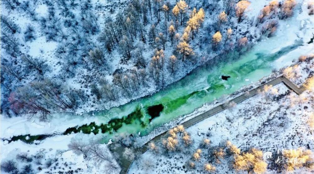霜降枝头,白雪覆盖了森林,冬日里的阿尔山看起来更赋魅力了。