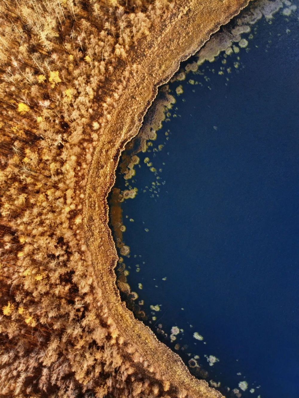 这里一年四季都有堪比欧洲的美,夏天四周的绿衬托着天池的碧蓝,清新而治愈,一到秋天则切换到了黄蓝的主色调,陷入油画般的美。