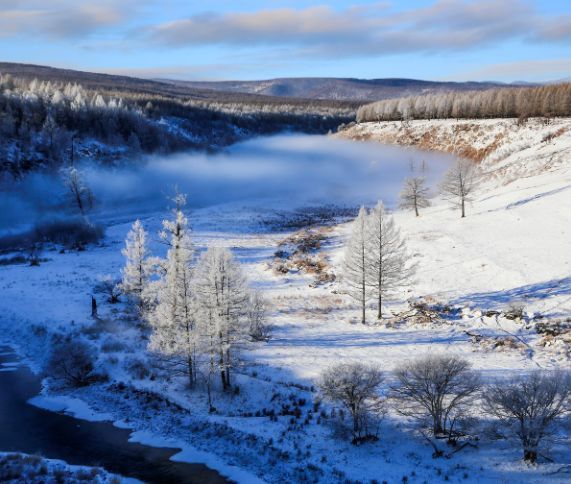 雪景、不冻河、雾凇、翡翠河等夏日难得一见的冰雪美景,既有北国风光的肃穆阔达,又有异域风情般的静谧森林!