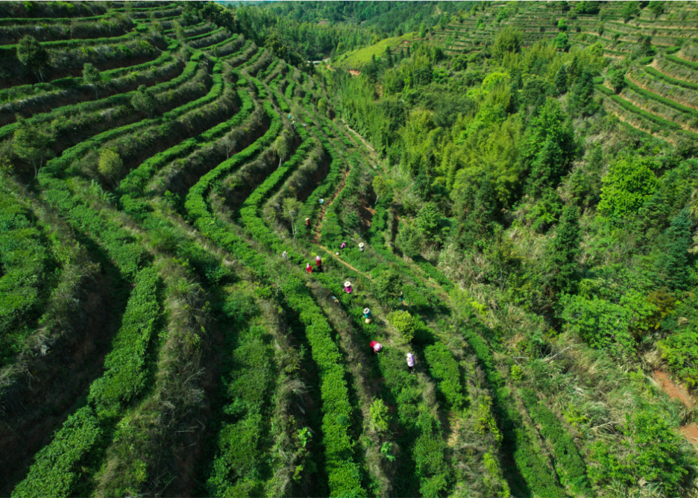 茶园拥有原始自然生态康养环境,打造“茶梯田风光、休闲文化地”,常年云雾缭绕,皇后山四面环山,如聚健康之宝盆。