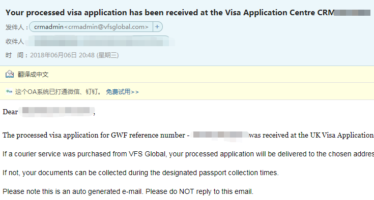 4、当你收到以下邮件的时候,不要犹豫,就是指可以领取签证了: