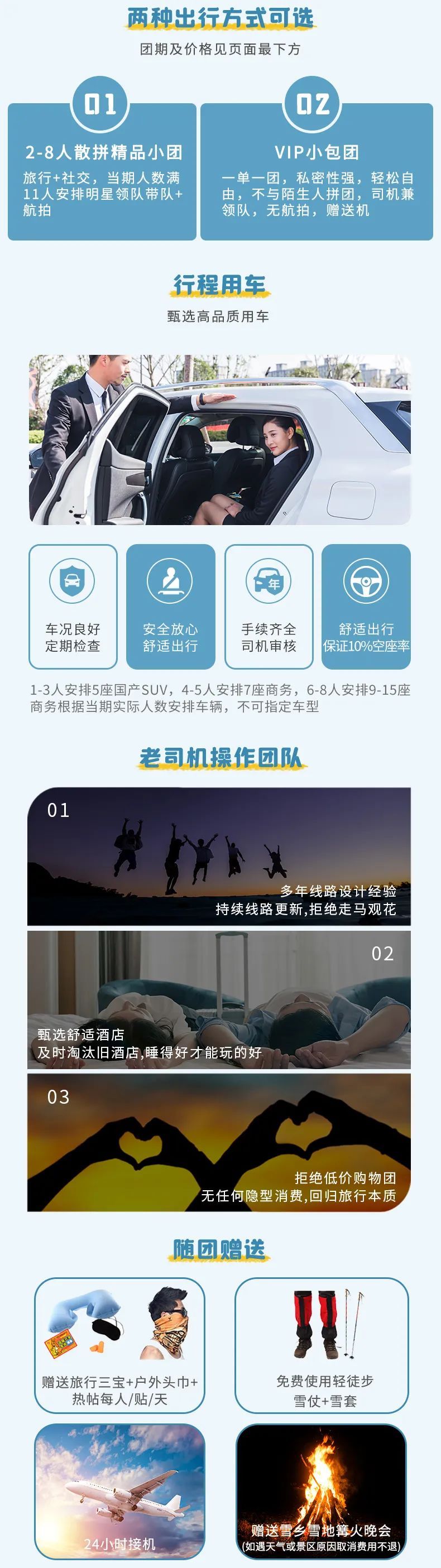 5、领队:当期满11人及以上安排专职领队兼航拍师,11人以下为司机兼领队无航拍;