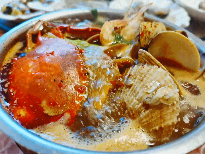 推荐美食:海螺湾休闲驿区、“一锅四吃”的大乳山海鲜地锅,品下石硼村赤鳞鱼、石硼鸡等特色农家宴。