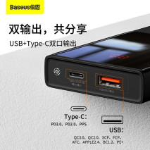 倍思充电宝20000毫安。真的好小,甩掉了50%体积,大小恰到好处,仅占手机一半。支持安卓手机22.5W超级快充,20W苹果手机PD快充,电量智能数字显示。22.5W大功率输出,半小时充满手机—半电量。迷你精巧外观,融入手感油材料,如婴儿肌肤般舒适,上手便爱不释手。