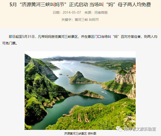 六一儿童节、父亲节、母亲节、重阳节、中秋节、春节尤其是元宵节,这种类型节日的策划,重点在于结合节日由来以情感人的方向来做。有的景区喜欢在这种节日上去做噱头式营销,其实很容易陷入恶俗之流。比如之前济源黄河三峡景区曾经在母亲节举办“喊一声妈就给免门票”的活动,景区的知名度可能突然上涨,没法对品牌形成有效积累,但是对品牌长期并无帮助。