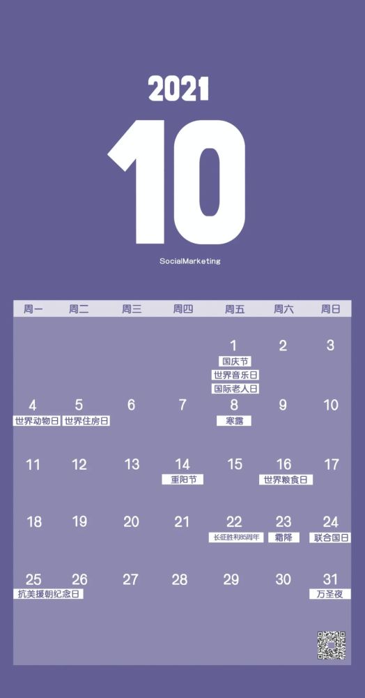 国庆节、国际音乐日、世界动物日、重阳节、世界粮食日、万圣夜