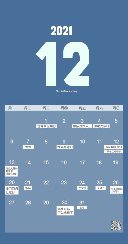 世界足球日、双十二购物节、国家公祭日、澳门回归纪念日