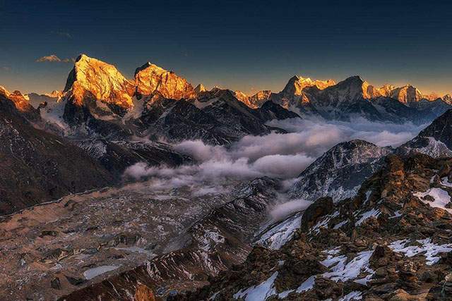 尼泊尔被称为是南亚山区内陆国家,因为在喜马拉雅山脉南麓,在地理外形上是一个近似于长方形的国家,海拔平均高度在4877-8844米,拥有着全世界14座海拔超过8000米的山川的半数以上。