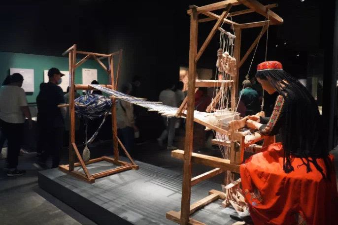 二楼是民俗展厅,展示了维吾尔族的饮食习俗、医药、艾德莱斯绸、和田玉、和田地毯、于阗乐器等。(注:这个展厅不常开放)