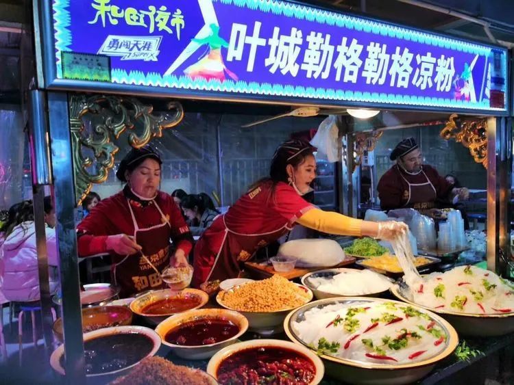 在和田,一个夜市就能让你大饱口福。和田夜市是每一个来和田的人必到的打卡胜地。
