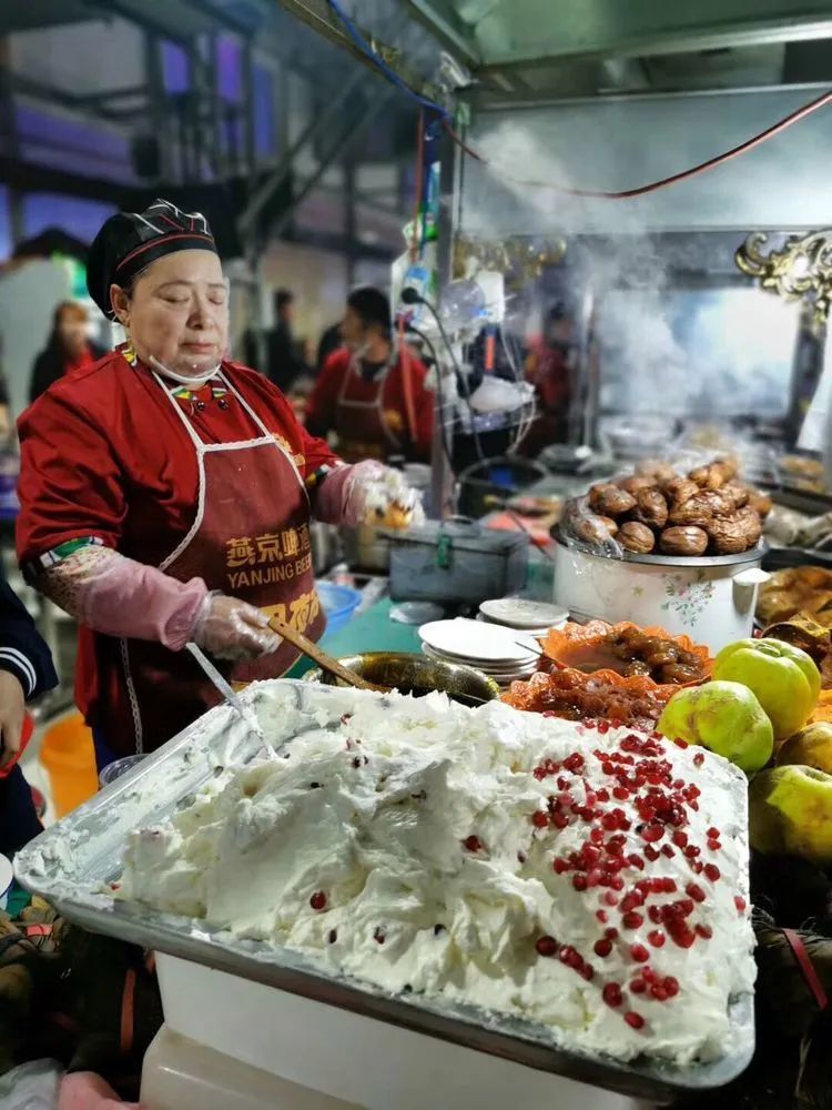 打车时如果你说去和田夜市,司机会问你老夜市还是新夜市。新夜市在室内,非常热闹,这里基本囊括了和田的各种美食,酸奶粽子、薄皮包子、红柳烤肉,还有各种闻所未闻的食物。老夜市随便一打听就找得到,烤蛋是和田夜市里的明星产品之一,大到鸵鸟蛋,小到鸽子蛋,在和田,什么蛋都能烤一下。在和田老夜市,烤蛋是最畅销的,有很多个商铺。做法相对复杂的“三蛋一星”,一定要亲自来尝尝。