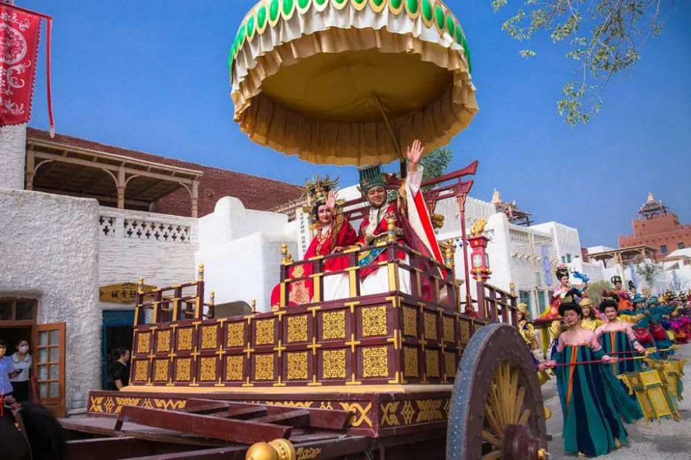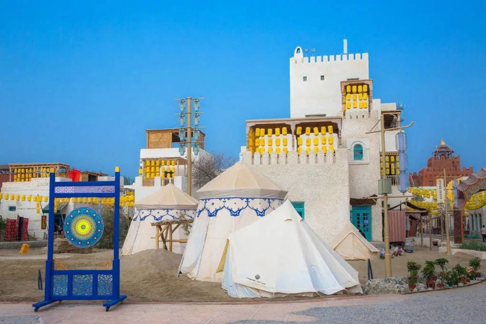 约特干故城在新疆和田县巴格其镇,是和田地区首个民俗文旅项目,通过布局演艺表演、美食街巷民宿酒店、手工作坊、文化展馆等场景业态以文化赋能,加上现代技术全景演绎再现丝绸之路古于阗的盛景。