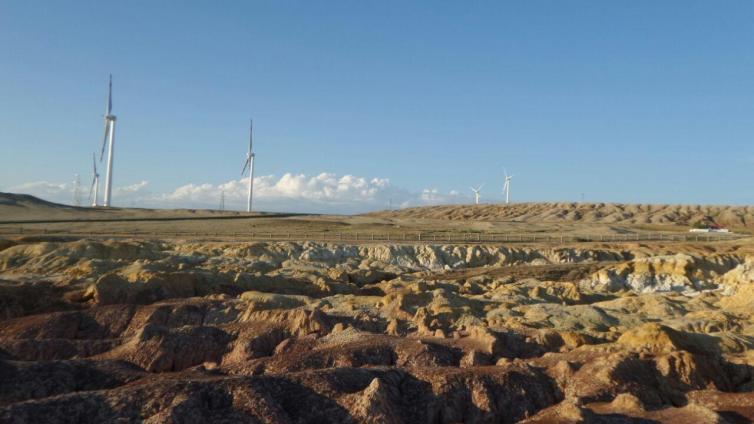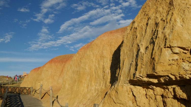 五彩滩地貌特殊,长期干燥地带,盛行大风,使原来平坦的地面变异出许多陡壁隆岗(墩台)和宽浅沟槽漕相间的地形和陡壁险峻的小丘,维族称之为“雅丹”又名“雅尔当”。景区简介五彩滩位于布尔津县城以北约24公里处,是前往哈巴河县与喀纳斯的必经之路。