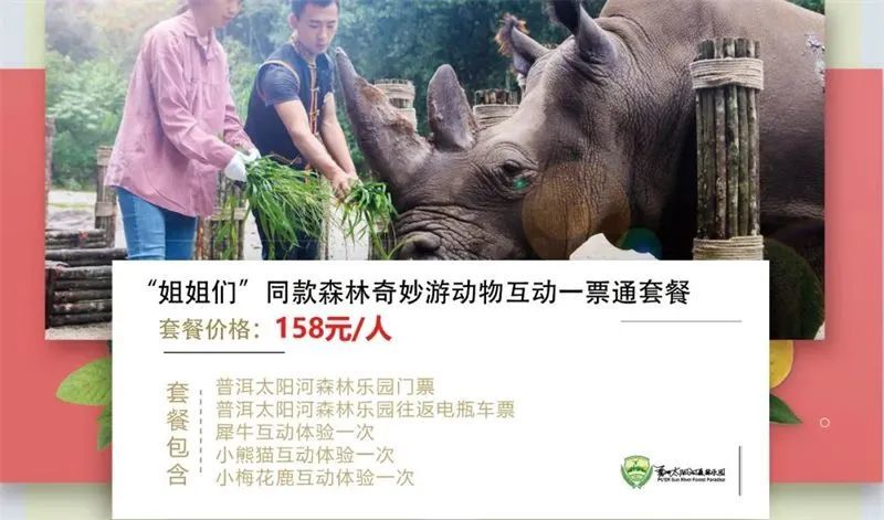 “姐姐们”在景区与犀牛、小熊猫等动物进行了互动,并入住了小熊猫庄园,同款“门票+车票+动物互动套餐”及“小熊猫庄园住宿+体验活动套餐”欢迎体验。