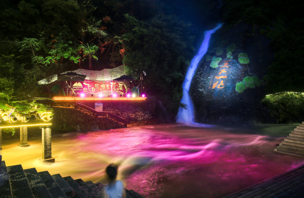 花溪景区是磐安第一个景区,经过三年提升改造,2020年全新回归,夜游花溪项目填补了磐安夜间旅游产品的空白,游客纷至沓来,带动了当地民宿业快速发展、群众增收致富。目前花溪已经发展了58家民宿,全村90%以上村民经营民宿,吃上了旅游饭。