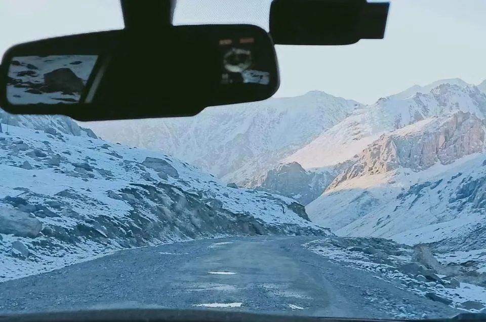 “八月里的冰火两重天,我只愿感受不平凡的景”。傍晚从乌市市区出发,经过三个小时的挂壁公路到达,这里海拔3590m,八月份,室外气温依旧零下3°。